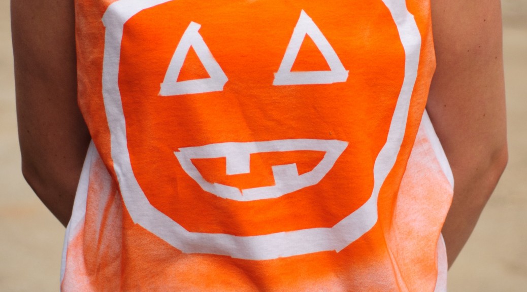 After the t-shirts are made and everyone’s wearing them, we get some fun games started. One of our favorites is called “Newspaper Costume Contest”. We separate the group into teams. It works best if you have at least 3 people per team, especially if there are children playing. Every team gets a stack of old newspapers, scissors, masking tape, packing tape and/or scotch tape. On the word “go!”, each team has to create a handmade costume using only newspaper and tape. One person has to designated as the “costume” wearer and the other teammates are the builders/designers. I recommend a 30 minute limit, but you could make it longer. To set the mood, I will play Halloween music while the teams work. After the time is up, have a costume parade and judge for places. Make sure you have lots of prizes – it’s hard to choose a favorite sometimes. Also, it’s important to take as many photos as you can!